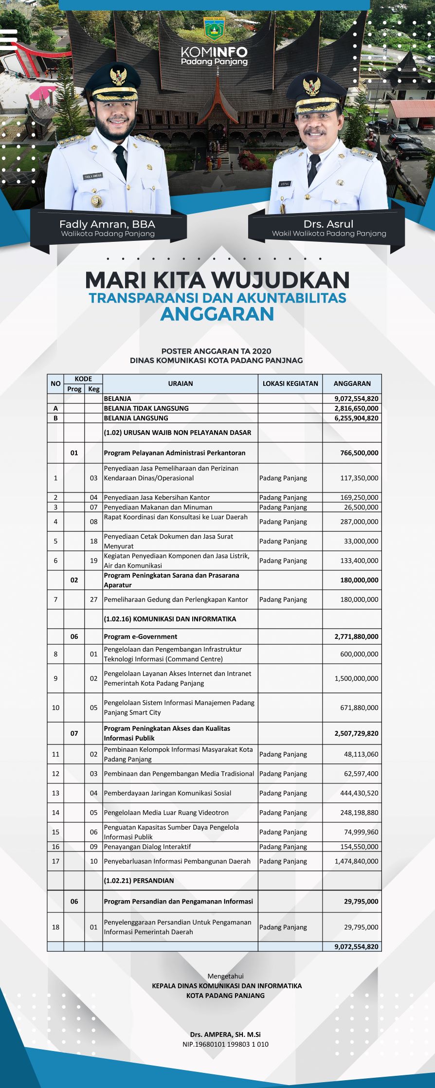 POSTER ANGGARAN TAHUN 2020 DINAS KOMUNIKASI DAN INFORMATIKA |