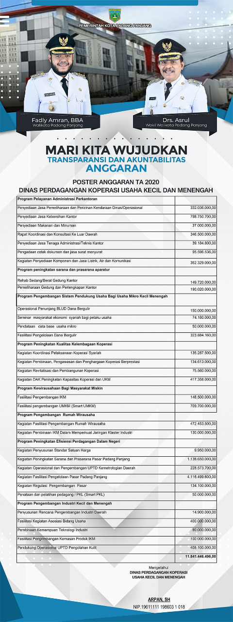 POSTER ANGGARAN TAHUN 2020 DINAS PERDAGANGAN, KOPERASI, USAHA KECIL DAN MENENGAH |